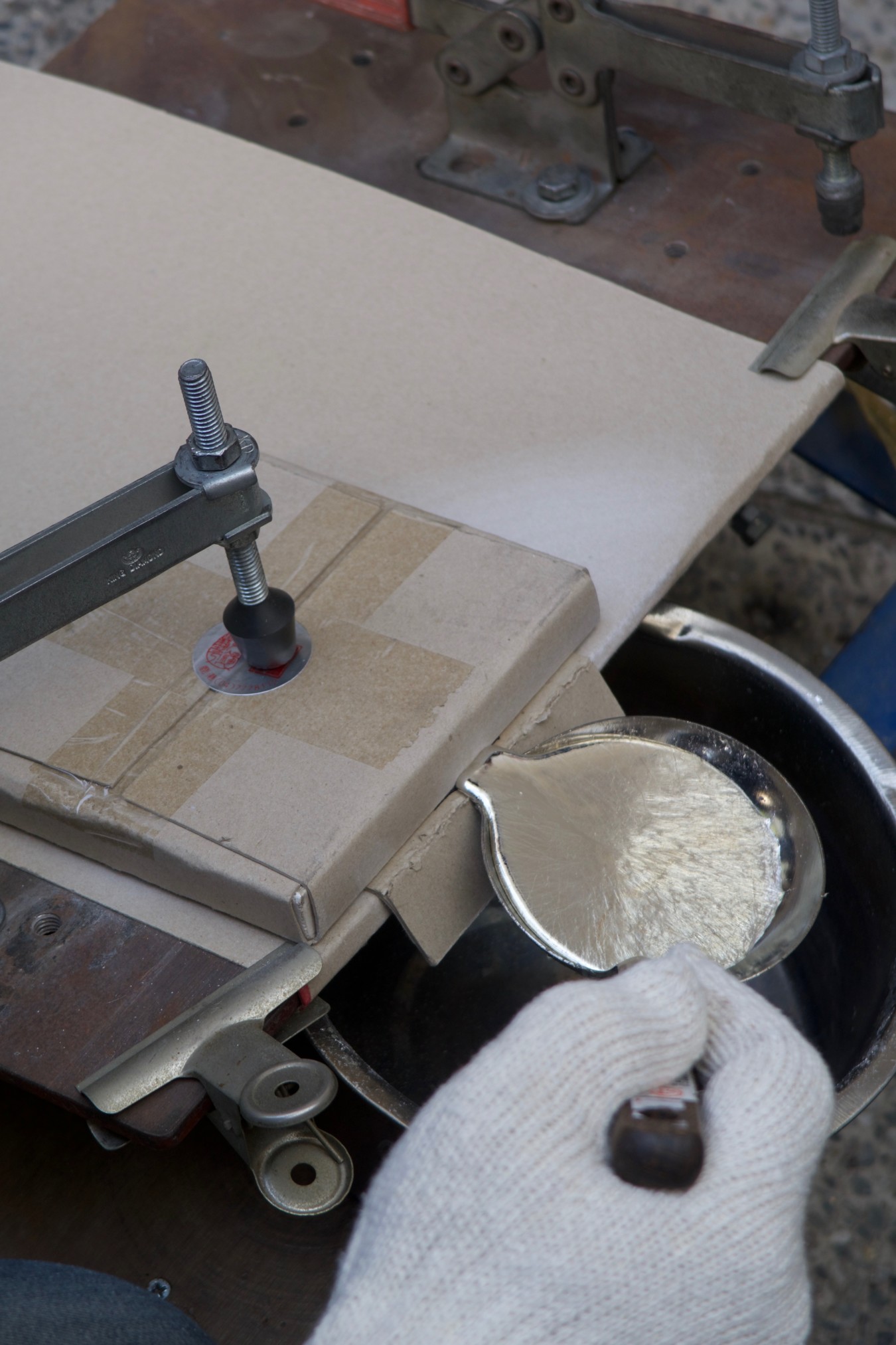 Tin is still very much used within temples and there are still a few studios who produce eclesestical metalwork including large statues to altar pieces. Superinteresting to discover and share new processes and methods of making; like casting in hand carved stone moulds. And casting within cardboard. Wonderful stuff